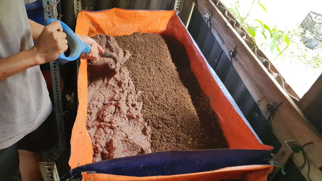 - significantly reducing the volume of organic waste sent to landfills (up until 2025, everyday our team of 4 workers processes on average 400kg of organic waste into feed and compost)