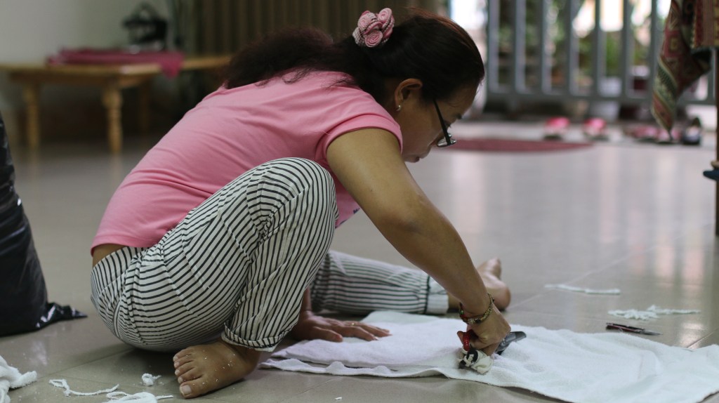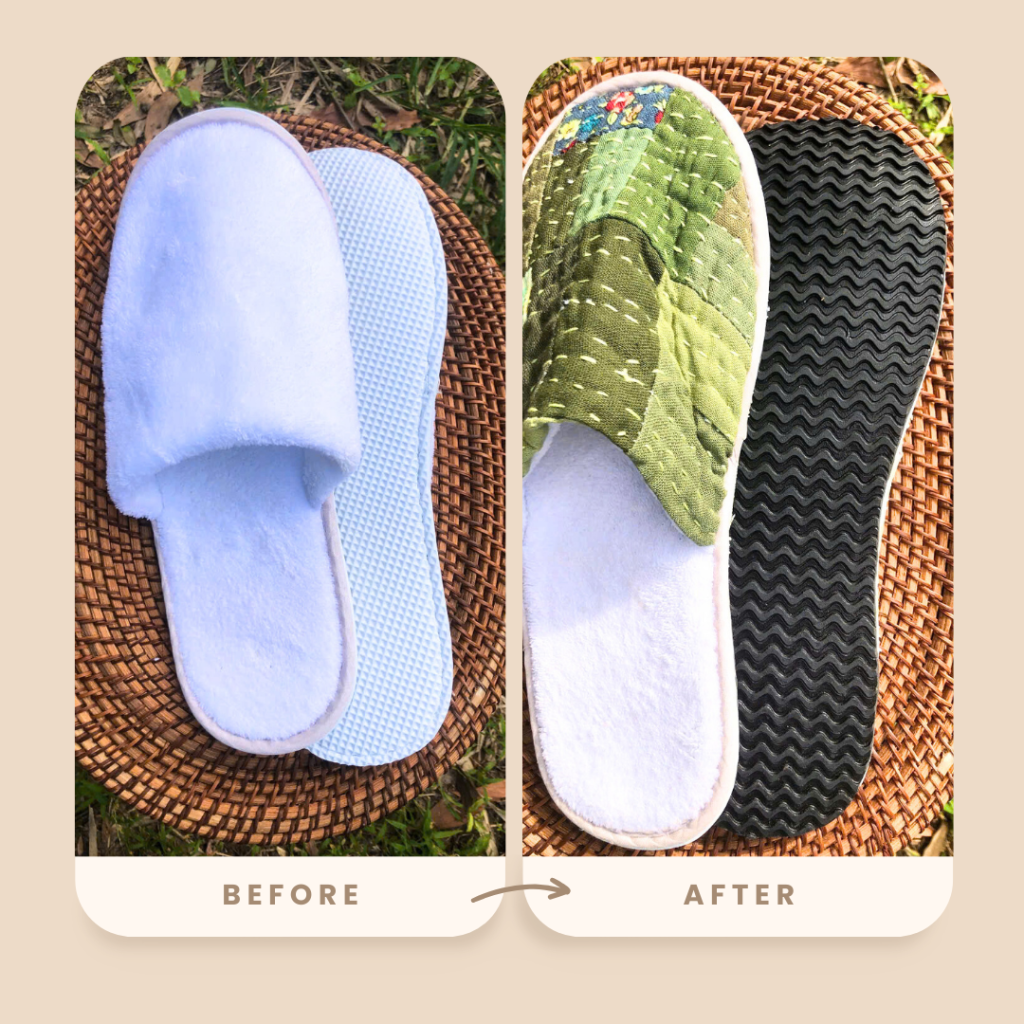 Refurbishing slippers discarded from luxury hotels